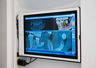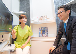 ●カウンセリングルーム カウンセリングルームはプライベートを重視した個室型空間。ディスプレイに映し出されたCT画像をご覧いただきながら、治療についてのご相談、カウンセリングを行います。 |