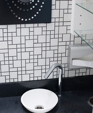 ●待合室 受付横の待合空間。歯の健康に関する映像やパンフレットなどの情報もご提供しています。 | | ●パウダールーム 診療前や診療後にご利用いただけるパウダールーム。 |